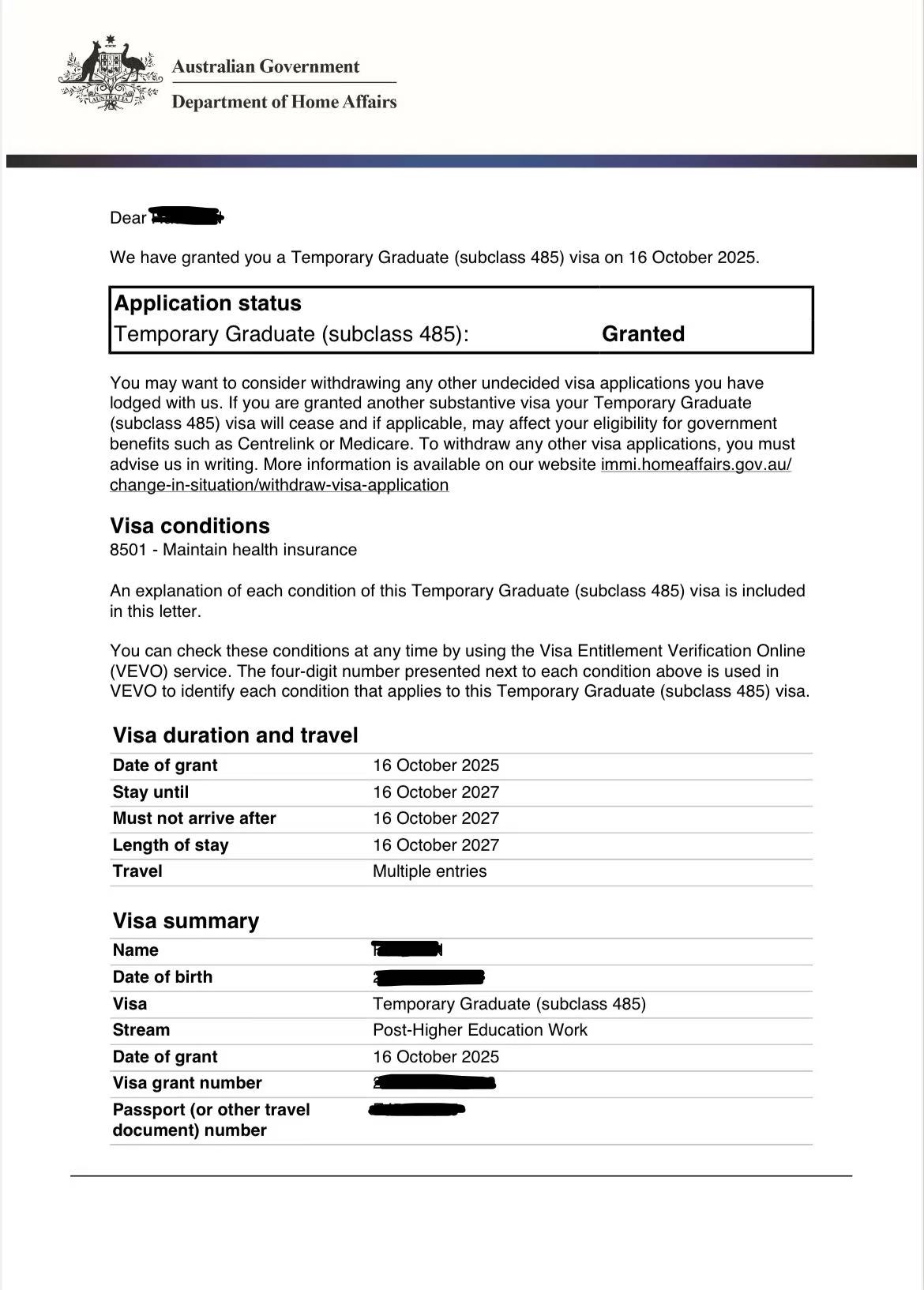 #485Visa #GraduateVisa #AustraliaVisa #VisaGrant #PandaMigration