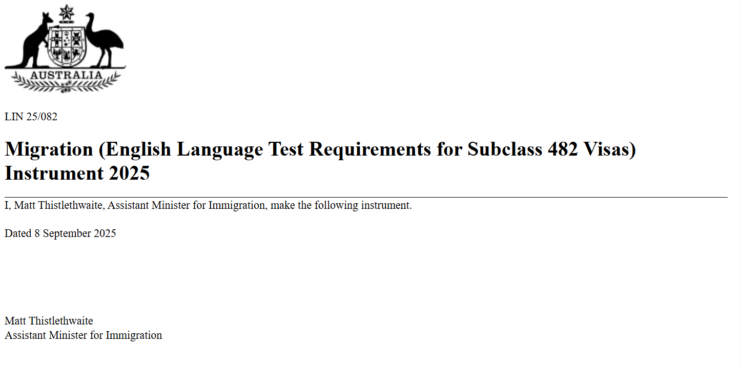 📅 Applies to 482 visa applications lodged on or after 13 September 2025.Your English test must also be taken on or after 13 September 2025.